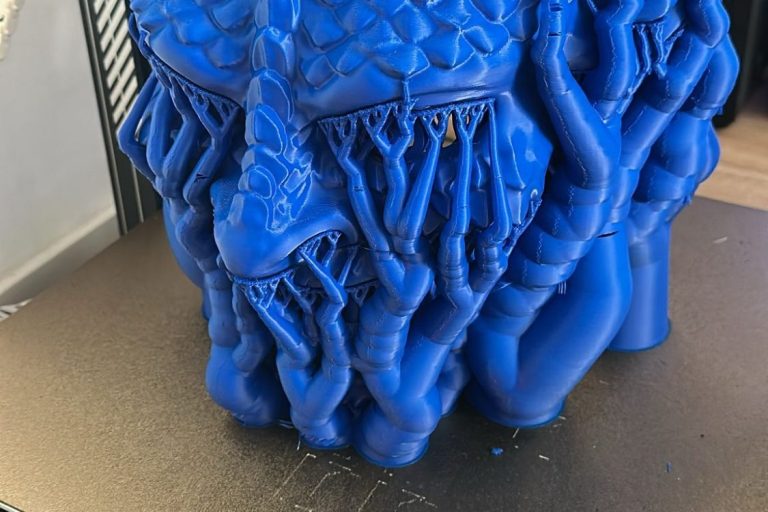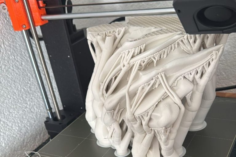 Nach unzähligen Tests und missglückten Masken schafft es heute unsere erste Maske nach fast 140 Stunden vollständig aus dem 3D Drucker.
